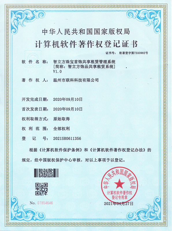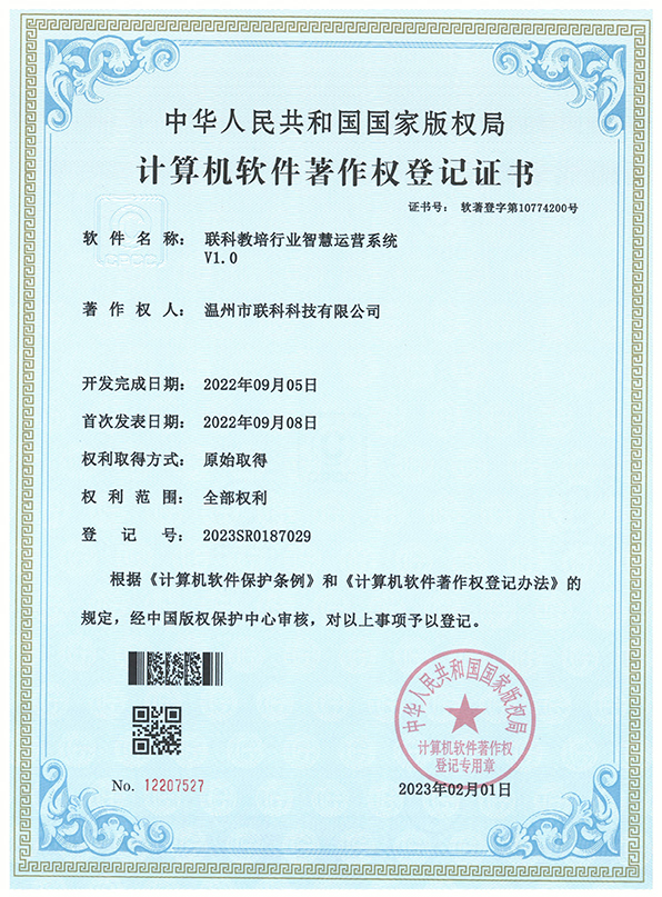 聯科教培行業智慧運營系統V1.0登記證書(2022R11L2324133)