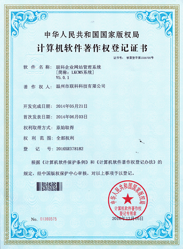 聯科圖片資源管理系統V1.0登記證書(2022R11L2489419)