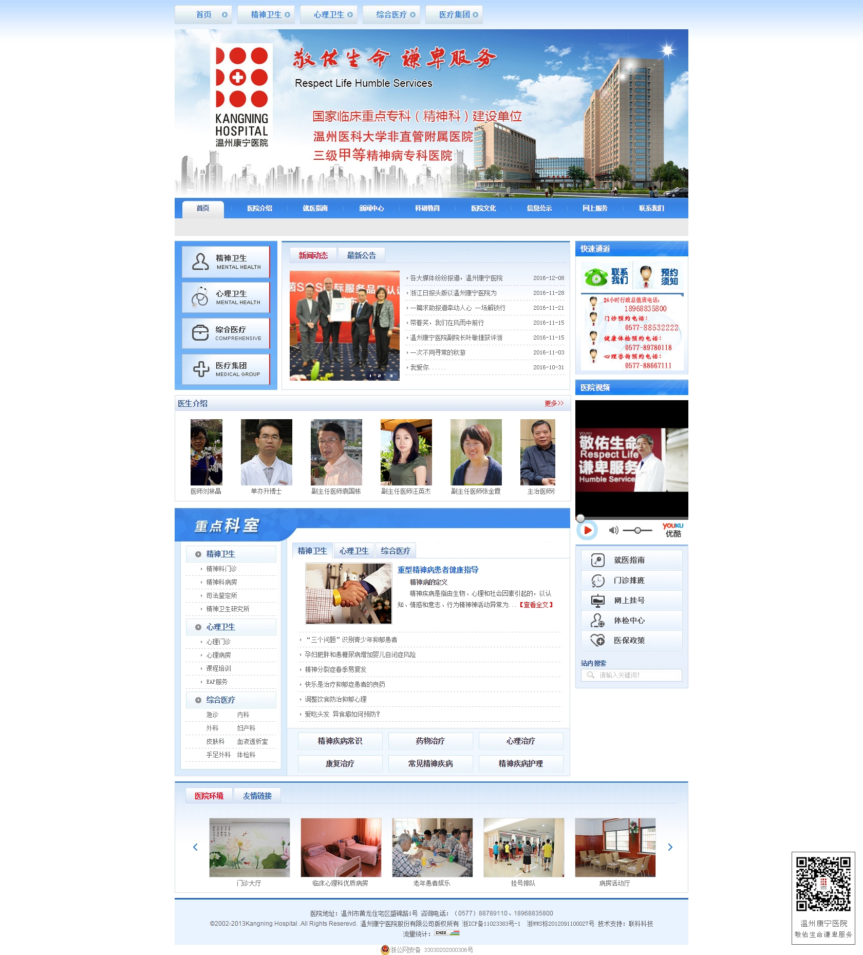 溫州康寧醫院(溫州醫科大學附屬康寧醫院)創建于1997年,以其為核心組建的溫州康寧醫院股份有限公司業務已從溫州覆蓋擴至浙江全省,并拓展至環渤海經濟圈及華南、西南地區,目前已經運營19家醫療機構,開放床位4439張。2015年11月20日,溫州康寧醫院股份有限公司在香港聯合交易所主板掛牌上市,成為國內第一家精神專科醫院上市公司。