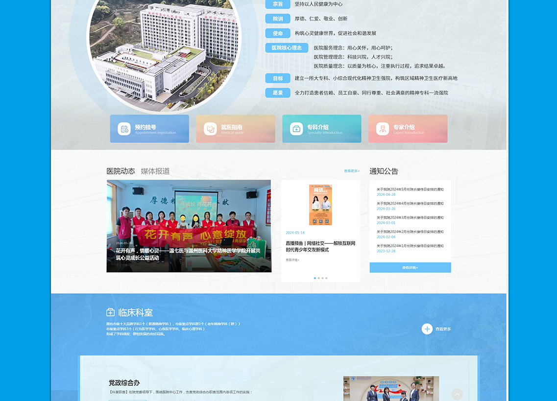 溫州市第七人民醫院創建于1959年8月,是溫州市本級直屬的唯一一家公立三級精神專科醫院,承擔全市的精神衛生醫療、教學、科研、預防、康復、心理咨詢和對外學術交流等任務。醫院現為溫州市精神衛生辦公室掛靠單位,上海交通大學Bio-X研究院附屬醫院;上海市精神衛生中心、香港理工大學協作醫院;山東濟寧醫學院、溫州醫科大學、溫州大學實習醫院;浙江省平安醫院、浙江省健康促進醫院、浙江省綠色醫院、浙江省智慧安防醫院,浙江省老年友善型醫院,溫州市文明單位、溫州市節約型公共機構示范單位等。