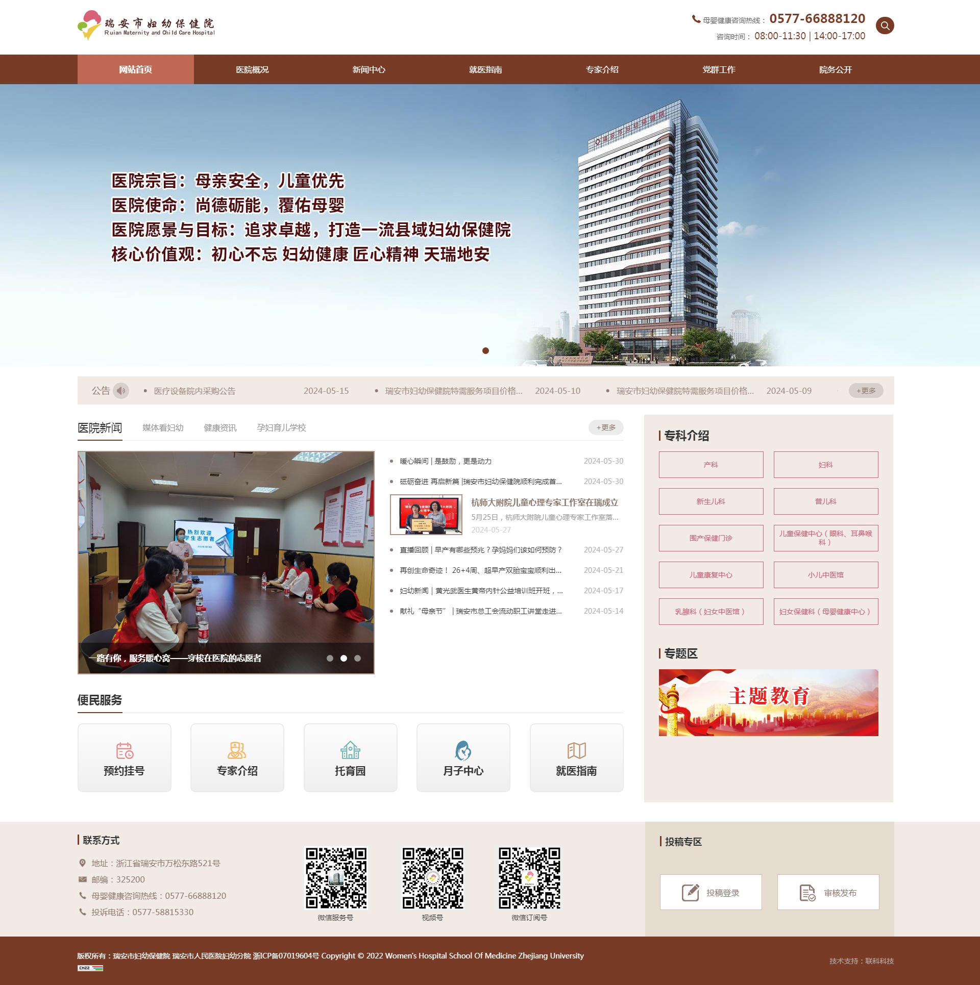 瑞安市婦幼保健院始建于1952年,1998年撤所建院,是一所集醫(yī)療、保健、預防、康復、教學、科研為一體的三級乙等婦幼保健院。曾先后獲得國家級愛嬰醫(yī)院、國家級PAC優(yōu)質(zhì)服務醫(yī)院、國家婦幼健康優(yōu)質(zhì)服務示范單位、中國宮頸癌防治工程定點醫(yī)院、國家首批鎮(zhèn)痛分娩試點醫(yī)院、浙江省平安醫(yī)院、浙江省婦幼保健規(guī)范單位、浙江省衛(wèi)生先進單位、浙江省兒童早期發(fā)展示范基地、浙江省優(yōu)生優(yōu)育協(xié)會先進集體、溫州市四星級兒童友好醫(yī)院等榮譽。