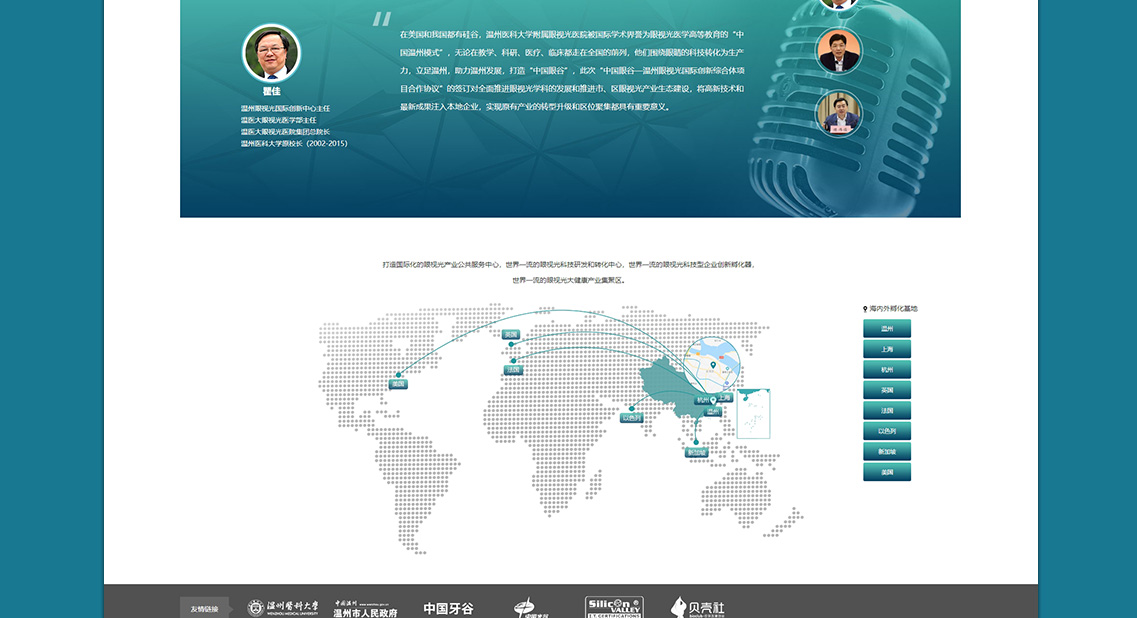 溫州醫科大附屬眼視光醫院聯合溫州市龍灣區(高新區)建設“中國眼谷-溫州眼視光國際創新綜合體”,依托醫院在眼視光領域全國頂尖、世界一流的醫教項目先期投入7億元建設占地80畝、建筑面積8萬平方米的孵化園區,后期配套建設占地1000畝的科創園,與龍灣生命科技園形成“一體兩翼”大格局。