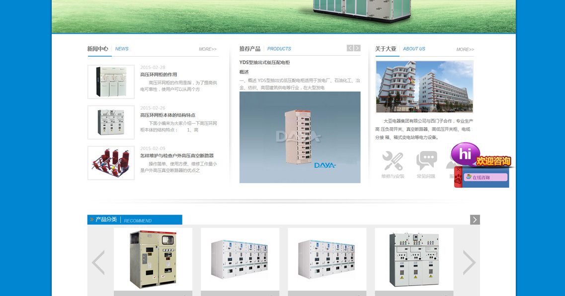 大亞電器集團有限公司(前身浙江大亞電 器設備廠)創辦于一九八八年,八九年和上海電器 科學研究所技術合作。九零年榮獲原機械工業部、 電力工業部生產高低壓開關成套設備定點企業、國 家經貿委兩網改造推薦產品企業。2016年與西班牙西蒙電力科技有限公司中外合資組成更強大的集團公司。