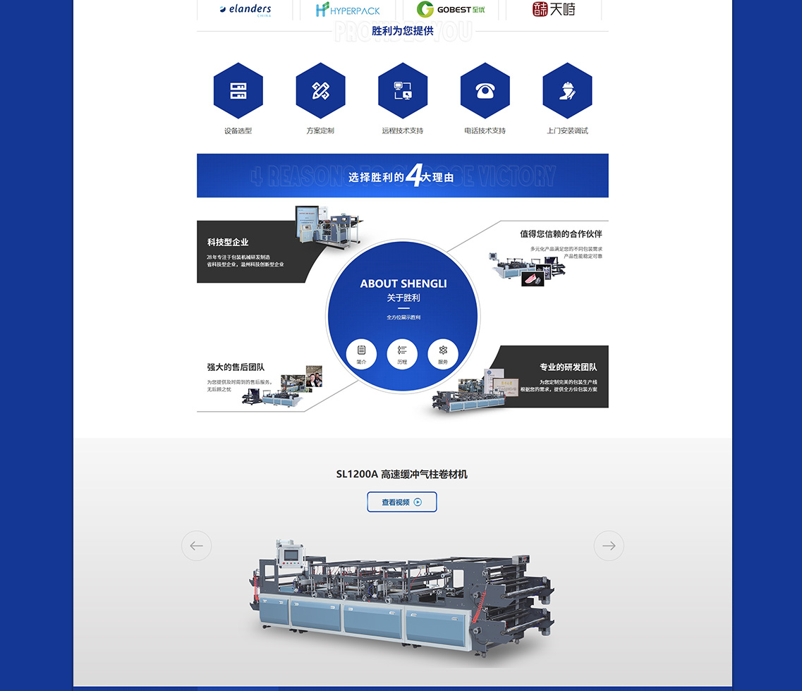 瑞安市勝利印刷機械有限公司,成立于1993年,是一家有著幾十年機械制造經驗,集研發、設計、生產、銷售和售后服務為一體的科技綜合型企業,在同行業中處于較好水平。公司技術力量雄厚、生產裝備精良、工藝技術先進、測試手段完備,專業生產高速緩沖氣柱卷材機、高速緩沖氣柱制袋機、高速緩沖任意點斷氣柱卷材機、高速緩沖任意點斷氣柱制袋機、高速無氣閥充氣鞋撐機、高速一出二緩沖氣柱任意點斷卷材機、高速氣柱氣枕葫蘆墊鞋撐一體機、冰袋機、袋中袋機、緩沖袋充氣機、緩沖袋打樣機、全自動燙印模切兩用機、程控燙印模切兩用機、燙