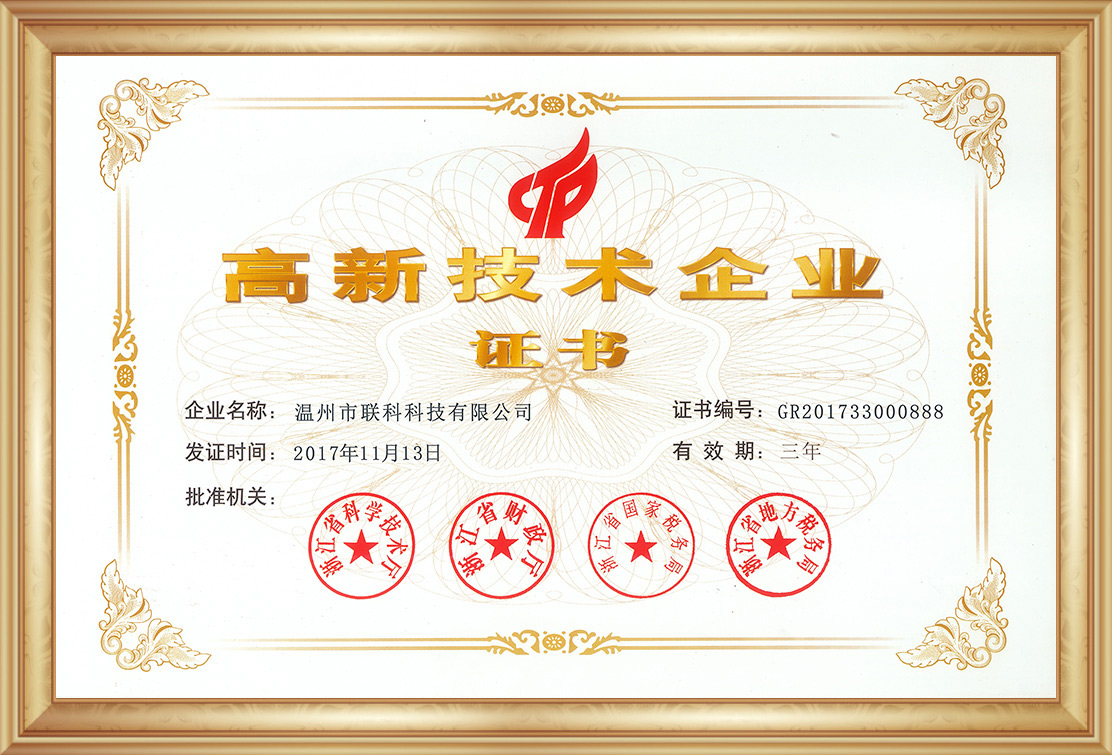 熱烈祝賀溫州市聯(lián)科科技有限公司被認(rèn)定為國家高新技術(shù)企業(yè)
