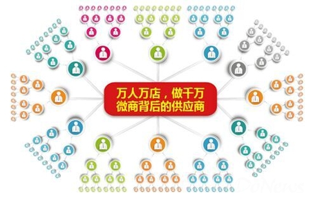 萬人萬店新商業模式主要應用于品牌零售行業,改變傳統品牌零售企業開店的模式,降低其成本,達到更高的經濟效益。其創新點在于:傳統品牌零售實體店都是開設在臨街店面,每開一個實體店都要投入租金、裝修、設備、人員等成本,多則幾十萬,少則十來萬,如果一個品牌企業要開100家實體店,投入就要上千萬的資金。傳統品牌零售企業如果采用“萬人萬店系統”的創新商業模式,只需要用一家店的成本就可以開出成千上萬家店。其商業模式是以微信、微博、APP平臺等新自媒體的傳播特性、結合傳統線下的代理分銷體系,利用現有門店資源,發動員工及員工親友、粉絲、經銷商、代理商一起開品牌微店,每開一家微店的成本幾乎為零,最終達到用開一家實體店的成本開出萬家微店,讓全民幫助企業通過移動互聯網銷售產品。